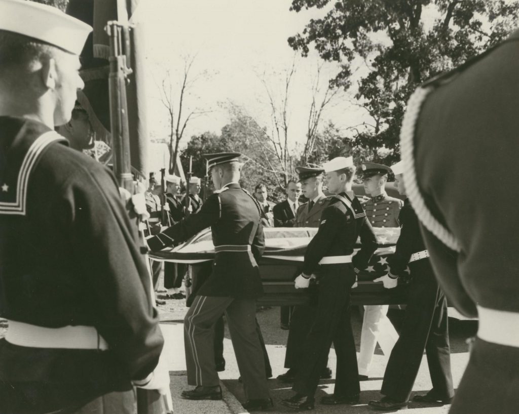Honorary pallbearers (14 in all): General of the Army Omar Bradley, M SGT James W. Powder, Robert Woods Bliss, BG Frank McCarthy, unidentified, M SGT William J. Heffner.