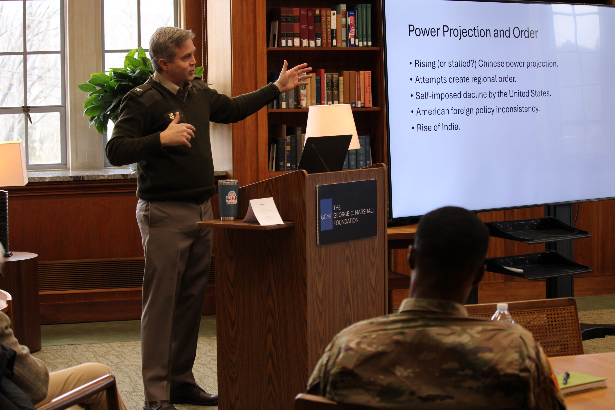 The 2026 seminar also marked the program’s return to VMI, where it was originally established in recognition of Marshall’s deep connection to the Institute. Its return was advanced through sustained collaboration and support, including significant efforts by George C. Marshall Foundation staff and its trustee Lt. Gen. Anthony G. “Tony” Crutchfield, to help bring the seminar back to Lexington and strengthen its focus on Marshall’s enduring leadership lessons.
