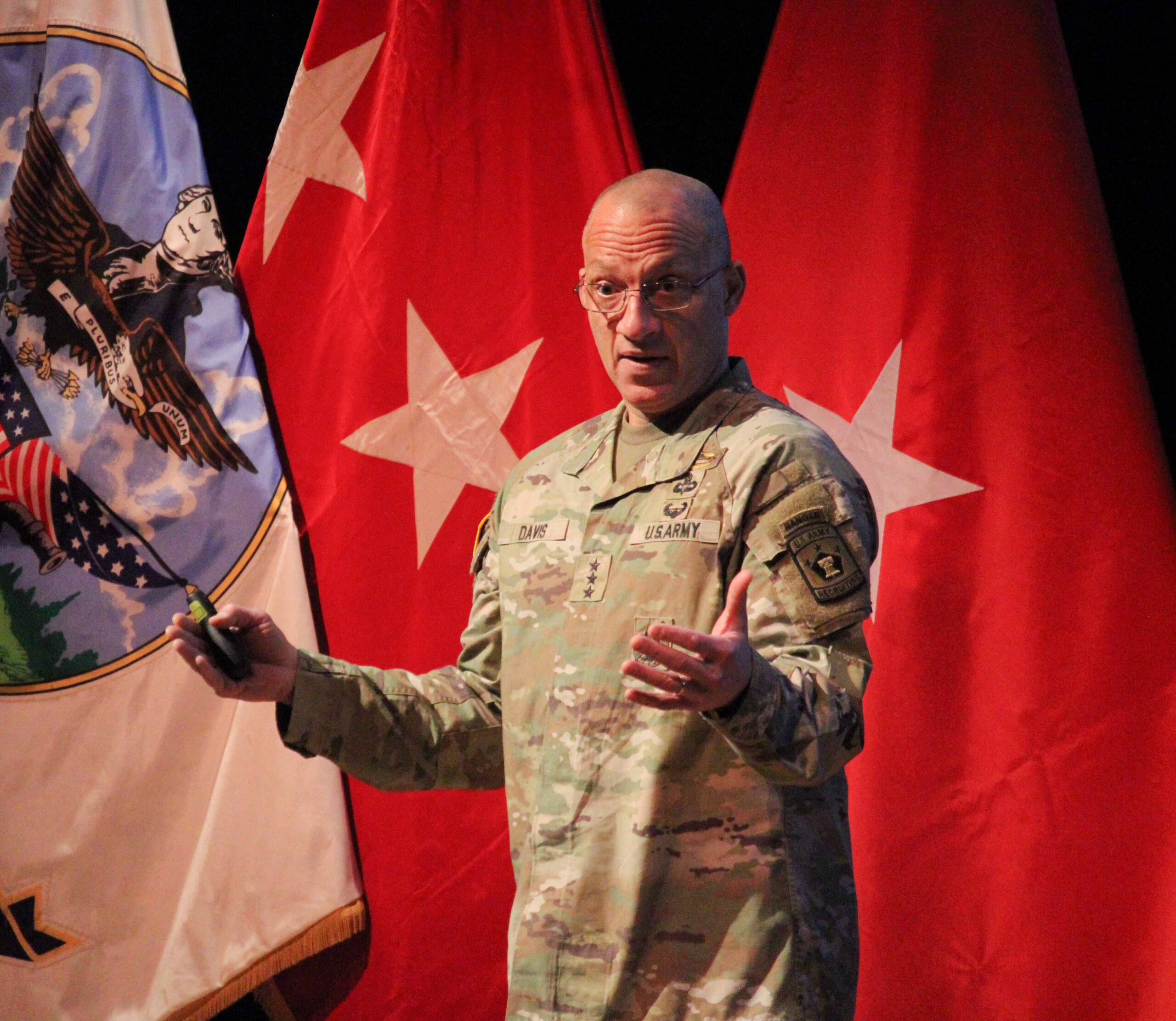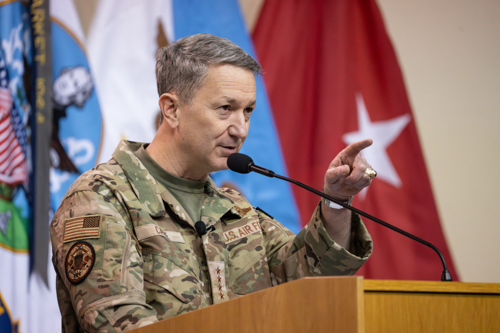 In keynote remarks, 22nd Chairman of the Joint Chiefs of Staff Gen. Dan Caine addressed the responsibilities cadets will soon assume as commissioned leaders. “Your path in service will not always be easy; you will be tested, you will be challenged, you will be asked to make tough decisions,” Caine said. He urged cadets to lean on Marshall’s example when the right answer is not obvious: “From time to time, you will find yourselves at a crossroads where you simply don’t know what to do, ask yourself the question: What would Marshall do?”